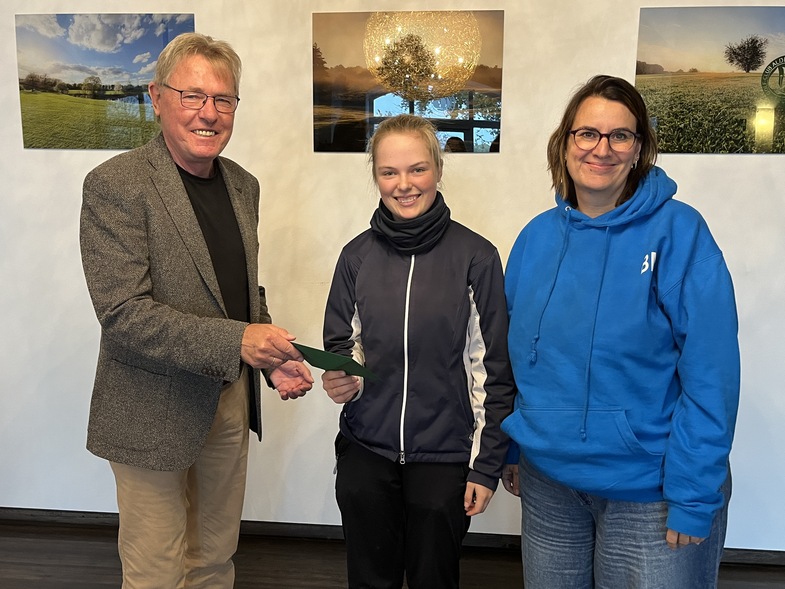 Präsident Peter Roschok und Jugendwartin Britta Müller gratulieren Luisa Hartmann im Namen des Golf-Clubs zur Berufung in den Junior-Nationalkader Deutschland.
