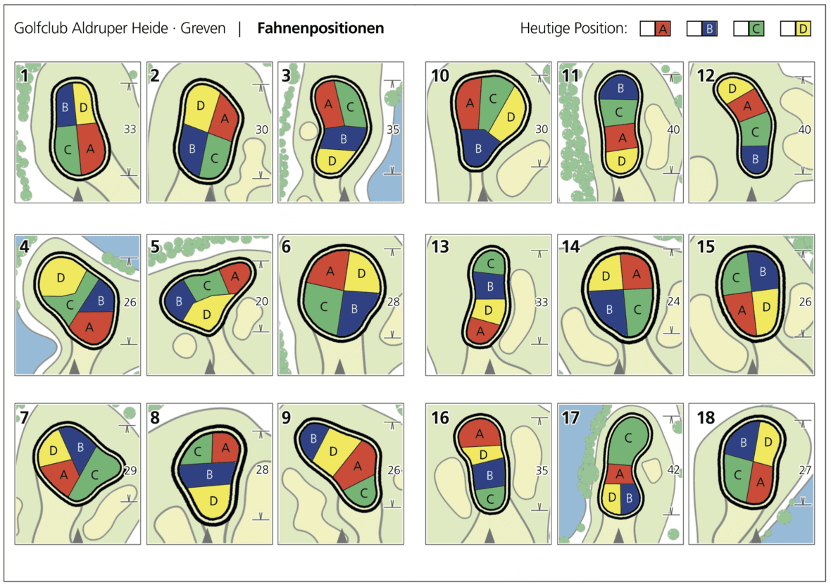 Der Platz ist für alle ein fairer Gegner, der seine Schwierigkeiten eigentlich offen zeigt und keine bösen Überraschungen präsentiert. Klicken Sie auf das Bild für eine Übersicht.