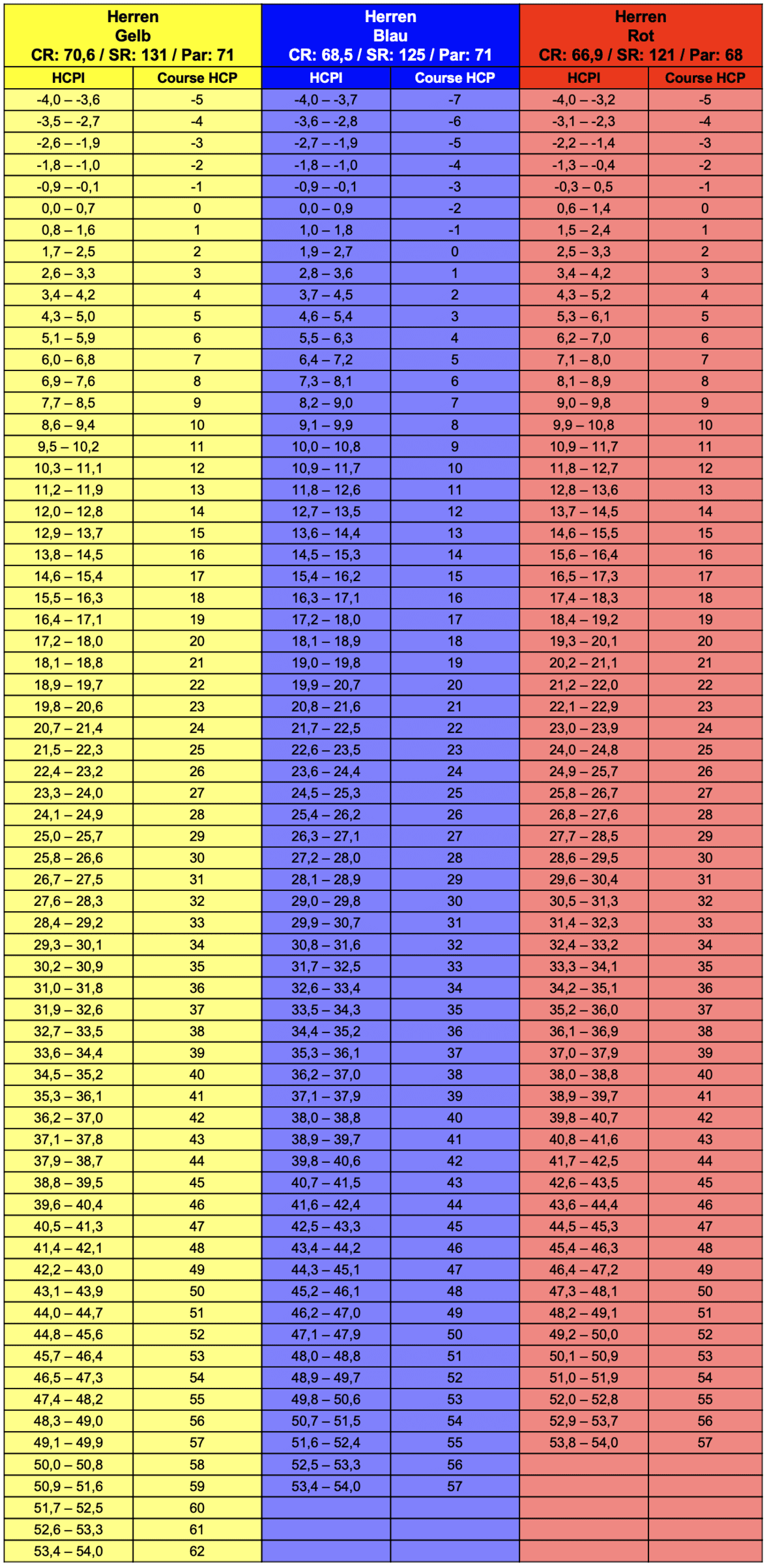 Platz: 1-9 - Course Handicaps - Hier zum herunterladen unserer Spielvorgaben.
